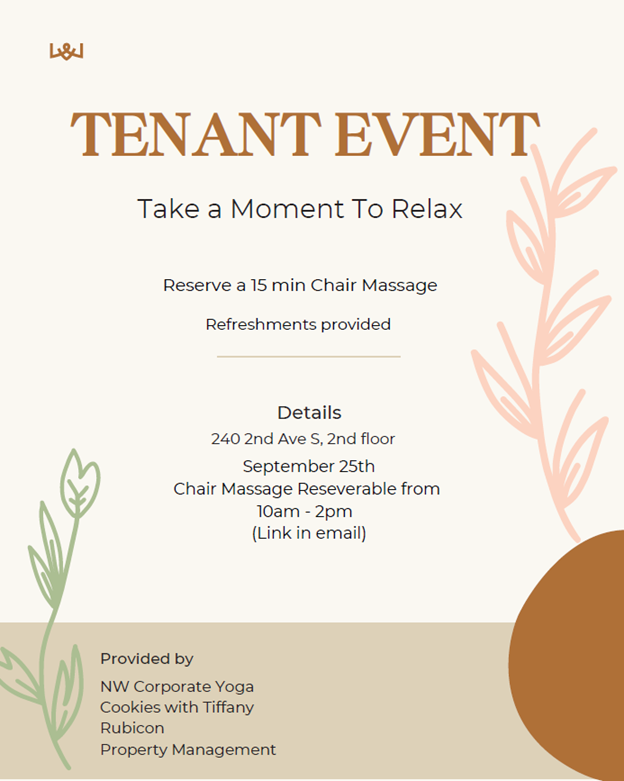 We will have the chair massage in a private office with cookies and refreshments in the lobby!