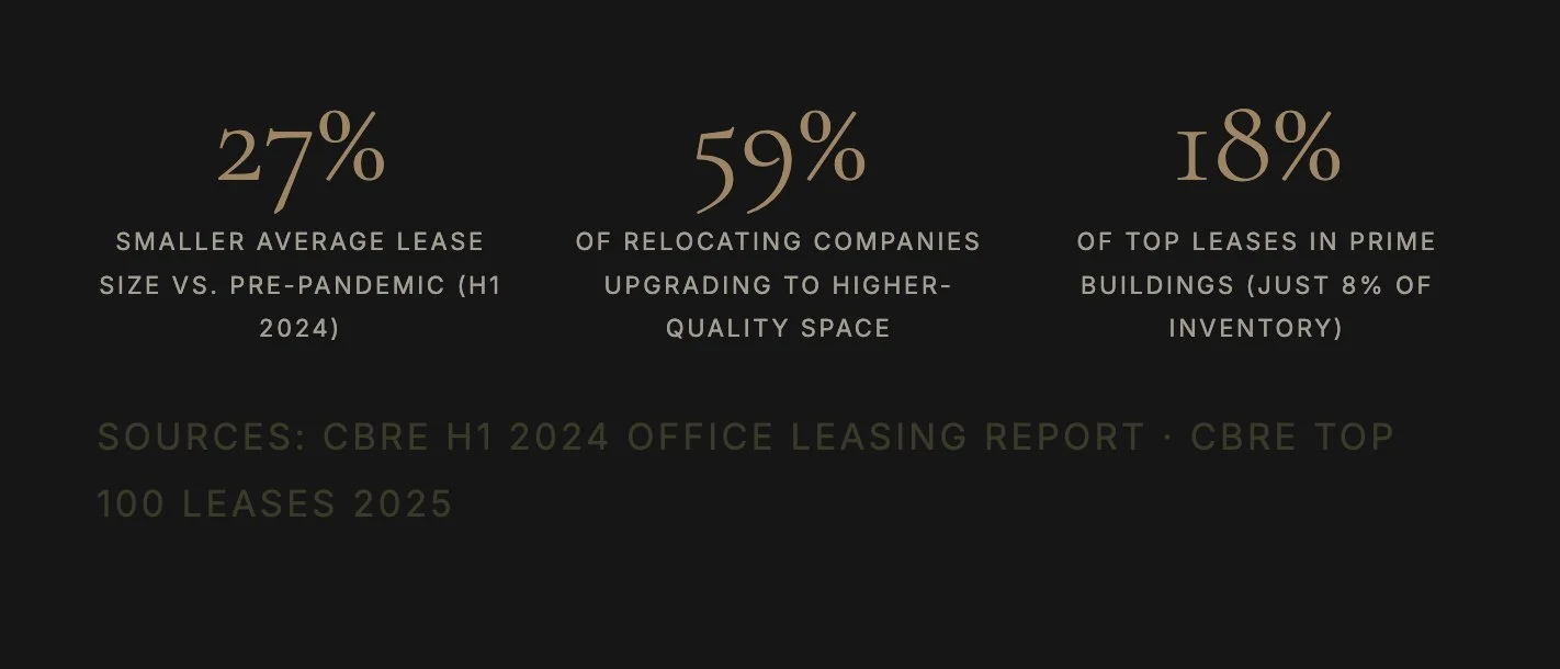 There's a phrase circulating in commercial real estate right now: "flight to quality." Tenants are ditching Class B and C buildings for trophy spaces and prime buildings that justify the commute. The logic is simple, if you're going to ask your team to come in, the space has to be worth it.